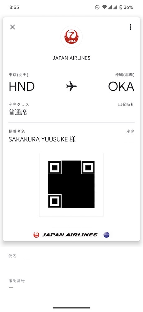 搭乗券のQRコードはJALアプリだけでなくGoogleウォレットでも管理できます。